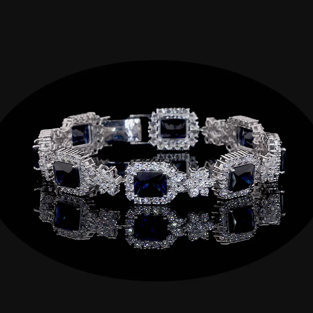 Reflecting the deep, captivating blue of the Aegean Sea, this bracelet is a vision of classic beauty. Set in sterling silver, each brilliant blue stone is a reminder of clear skies and tranquil waters, offering timeless Grecian elegance.